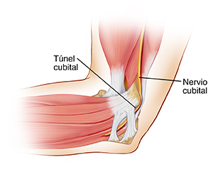 El túnel cubital es un surco en un hueso cercano al codo. Este surco estrecho sirve de paso para el nervio cubital. Este es uno de los nervios principales del brazo. El nervio cubital puede causar dolor en el "hueso de la risa" si el codo se golpea. El túnel cubital ayuda a proteger este nervio donde pasa por el codo y baja hasta los dedos.